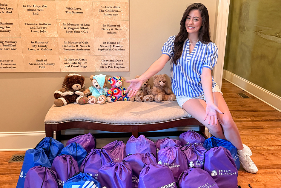 Locally, Dove House Advocacy Center in Statesville, NC was the first organization Bella’s Backpacks became involved with, and Isabella now also partners with Mitchell Community College – Safelight (Hendersonville, NC), Guardians of the Children (High Country and Mooresville Chapters), The Dragonfly House (Mocksville, NC), Safe Spot (Wilkesboro, NC), the Iredell County Crosby Scholars and the Thomasville Police Department.