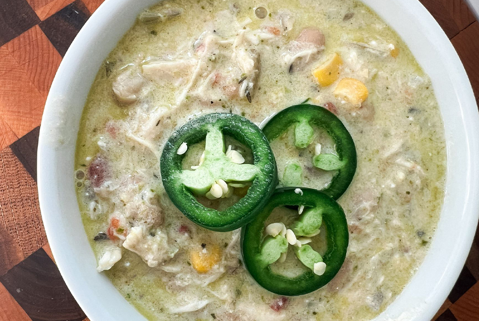 This pesto white chicken chili brings a little brightness to the gray days of January.
