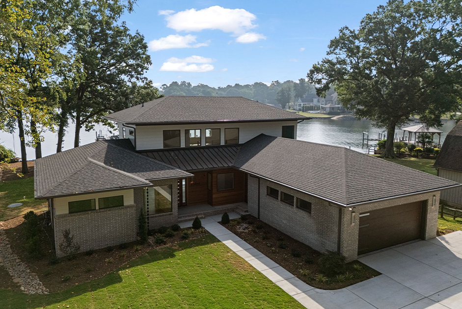 The Holliday Homes team brought the homeowner’s reimagined vision for their cherished Cornelius waterfront property to life as a stunning Prairie Modern retreat. Clean horizontal lines, custom brickwork, and expansive panoramic windows frame Lake Norman beautifully. From mitered shiplap to a kitchen pass-through window, every detail celebrates the architectural excellence of Ashley J Design and honors the homeowner’s lakeside legacy.