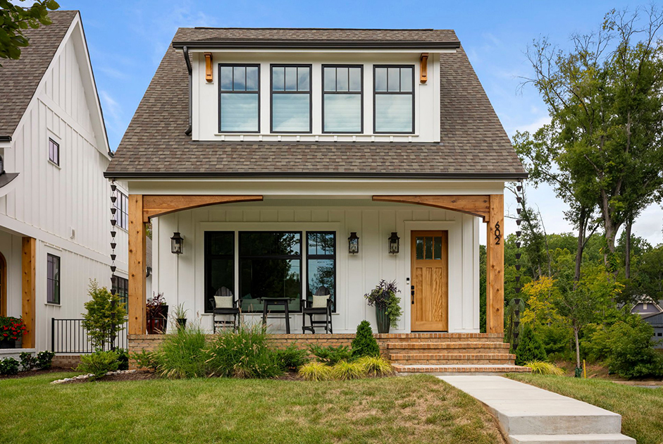 The Holliday Homes team, in collaboration with local architect Nicole Perri, transformed an underutilized Davidson lot into six modern cottage homes, each exceeding 3,100 square feet. Thoughtful three-story floorplans maximize vertical space while maintaining a compact footprint and detached two-car garages connected by breezeways add both practicality and charm. With custom millwork, elevator access, main-level primary suites, and distinctive finishes, these walkable infill homes pair timeless cottage character with modern, everyday functionality.
