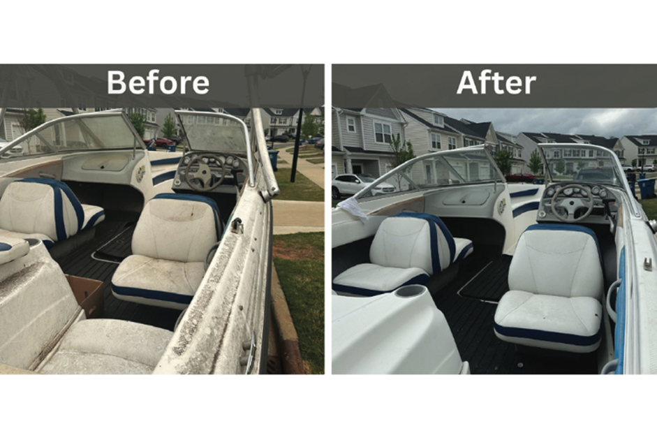 “We use professional marine compounds to properly restore gelcoat based on its condition, which is not a one-size-fits-all approach, nor is it the out-of-the-box products you’ll find at local hardware stores. For protection, we choose Hydro Guard over traditional wax, which simply doesn’t hold up in Lake Norman’s heat, due to its low melting point. Hydro Guard bonds to the surface for longer-lasting protection and easier maintenance,” he explains. “I also rely on Starke’s core detail products, including their mildew cleaners and surface treatments, because they’re highly effective and simply the best for marine environments. We’ve seen an increase in demand for the premium service of advanced gelcoat restoration, deeper oxidation removal, and specialty surface treatments in the last few months, all services that help customers protect their boats. These services are for lasting results, not short-term shine.”