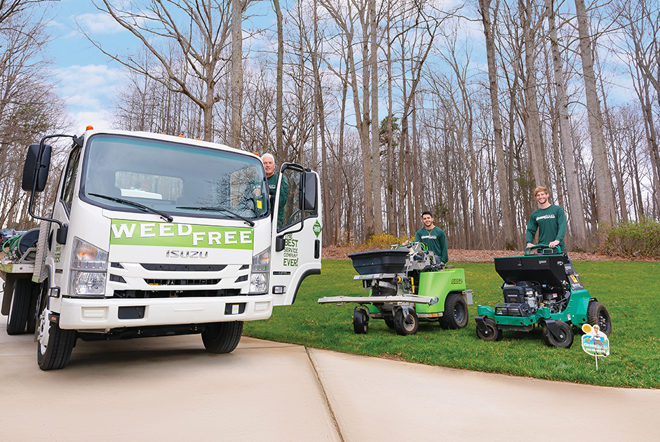 Every lawn is different, and the team starts by getting acquainted, says David. “These are questions we ask a new customer: Do they have irrigation? What are their mowing practices? After all, there are many different pressures and distractions, and then there’s Mother Nature!”