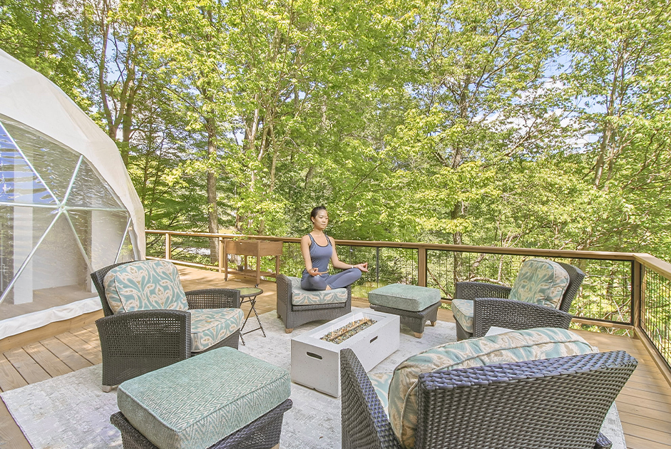 Alongside the forest bathing trails, Glamping Wild offers luxuriously appointed geodesic domes, each designed for privacy, comfort, and connection to the natural world.