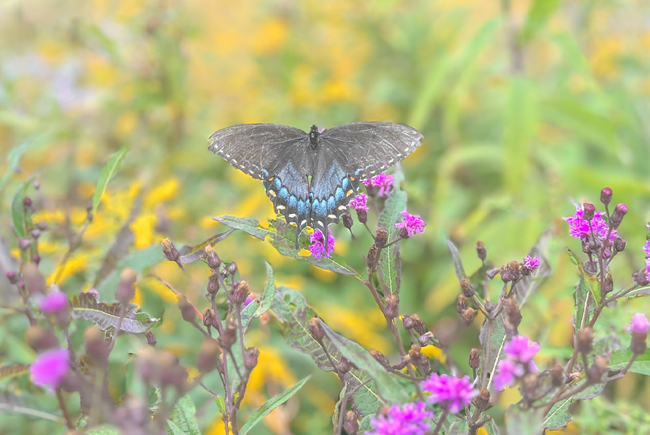 Unlike traditional hiking trails, a forest bathing trail is designed for slowness and stillness, with no destination or endpoint in mind. And while many certified trails are set in wooded environments, Glamping Wild’s trail expands the concept into a nature-based experience, highlighting the serenity of open sky, water, grasses, and seasonal changes in a dynamic wetland ecosystem.