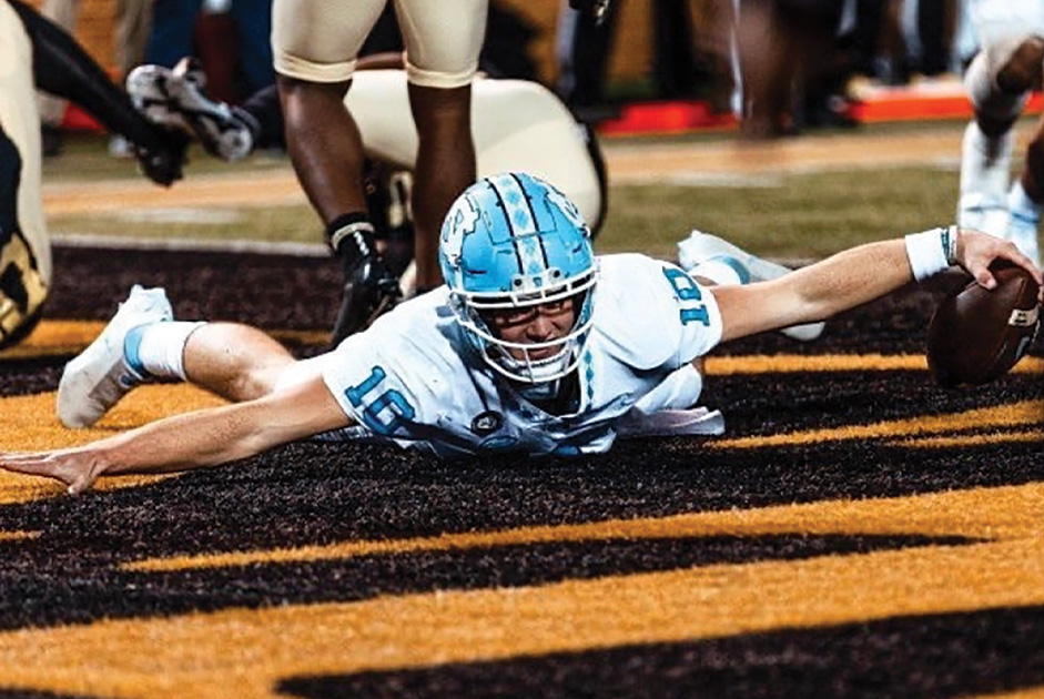 Fast forward to the offspring: Luke Maye was a member of the UNC basketball 2017 National Championship team, hitting the game-winning shot against Kentucky to send UNC to the Final Four in 2017, and on to a national championship. Cole Maye pitched for the 2017 National Championship baseball team at the University of Florida, and Beau Maye is currently a member of the 2022-2023 UNC basketball team. Luke, Cole, and Beau all graduated from Hough High School in Cornelius, while youngest son, Drake Maye, a graduate of Myers Park High School in Charlotte, has just completed an incredibly successful season as UNC’s starting quarterback. He guided the Tar Heels to a nine-win season, an ACC Coastal Division Championship, and an appearance in the ACC Championship game in December, at Bank of America Stadium in Charlotte. Even in his first game as starting quarterback, Drake launched a new chapter of the family legacy, completing five touchdown passes on one Saturday in Kenan Stadium!