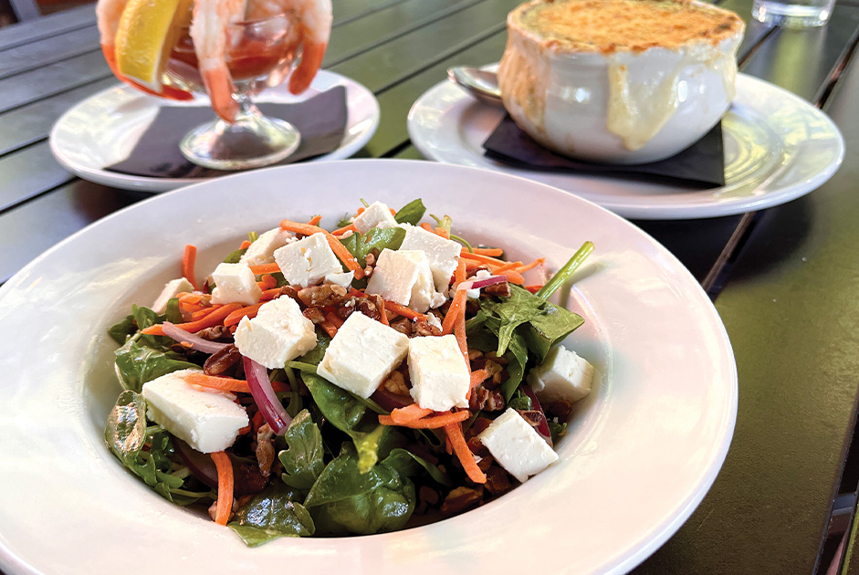 For starters we tried the French Onion Soup, Spinach Arugula Salad, and Jumbo Shrimp Cocktail. The soup was served in a traditional lionhead bowl topped with an overflow of cheese. Inside was a flawless amount of flavor, bread, and soup. A great item during the cooler months! It marks at the top of the list for favorite French Onion Soups we’ve had in the Lake Norman area. The salad contained candied pecans, crumbled feta, shaved red onions, and julienne carrots and can be ordered as a small or large. The house made signature dressing paired wonderfully with the ingredients and was not overdone. The shrimp cocktail was a good shareable appetizer, including four tasty jumbo shrimp with moderately spicy horseradish cocktail sauce.