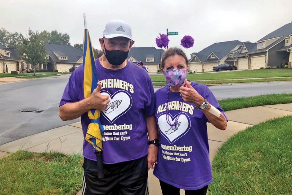 But most of all, there has been a real sense of hope for the future through participating in the Walk to End Alzheimer’s – Iredell County. They missed the event the first year of her diagnosis, so the family walked together for the first time in 2020, amid the pandemic. Somehow, through the adversity of caregiving in the middle of an isolating epidemic, Honey’s Walk team, Team Di, managed to be the top fundraising team. The family donned their purple hats and Walk t-shirts and walked around Dyan’s neighborhood since there was no large group gathering for the Walk that year. Even on the drizzly day, they met two neighbors who offered donations on the spot.