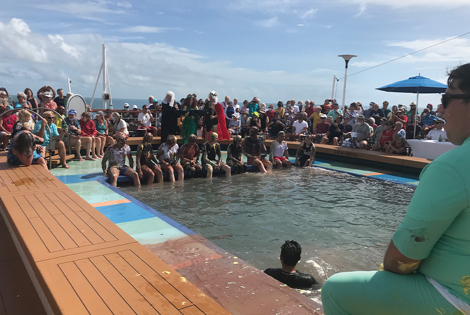 There is a tradition that sailors have been following for years when you cross the equator for the first time. They continued that tradition on this ship and had a big affair. It involved King Neptune in costume giving a fun speech, and selected candidates being covered in slime and having to kiss the statue of a fish. There were a lot of candidates and everyone had a really fun time. They gave us degrees that showed we had really crossed the equator with date, time, latitude and longitude.