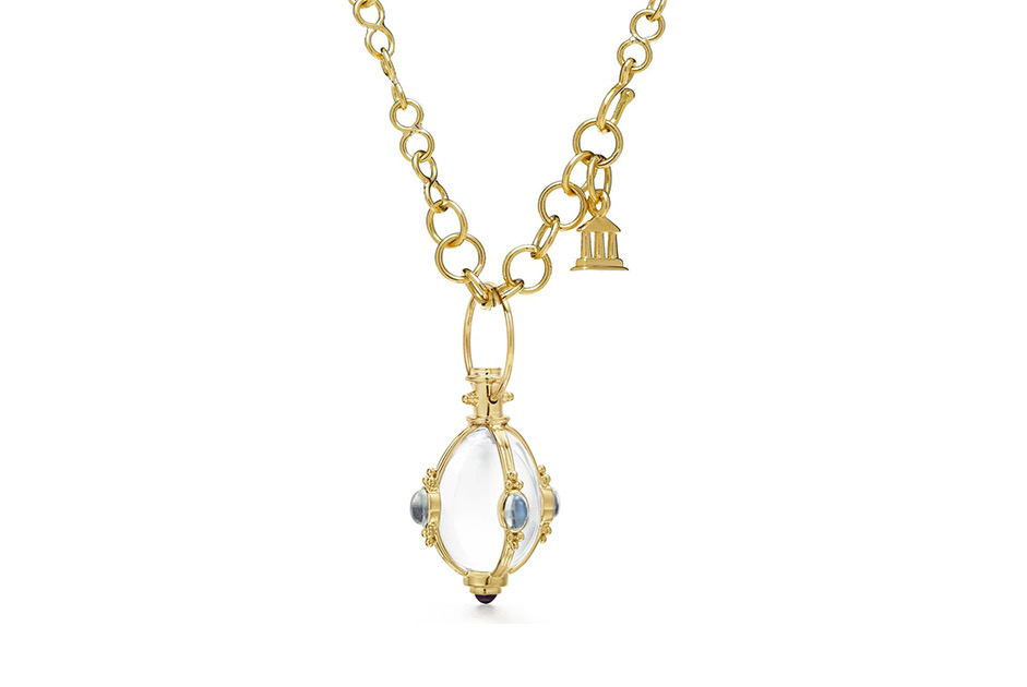 Designer Temple St. Clair infuses the magic of Blue Moonstone into the brand’s iconic Rock Crystal Amulet. Each compass point is marked by a cabochon-cut Blue Moonstone, while a single tanzanite at the base adds an ethereal glow to the luminous rock crystal. A meaningful piece for those who cherish both symbolism and beauty, shown here on an 18K Classic Chain—available this holiday season at Windsor Jewelers.