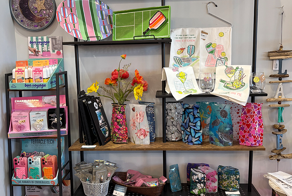 Customers feel comfortable spending time here, thanks to the shop’s intentional layout and relaxed ambiance. No stress of shopping for the perfect gift allowed here because you’ll always find it, and you’ll love every minute of looking!