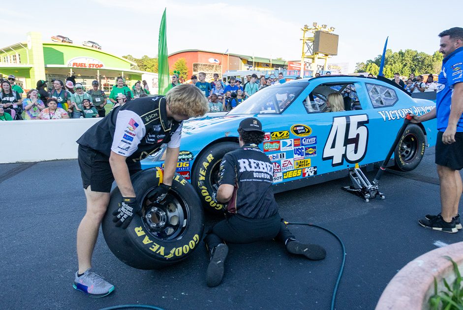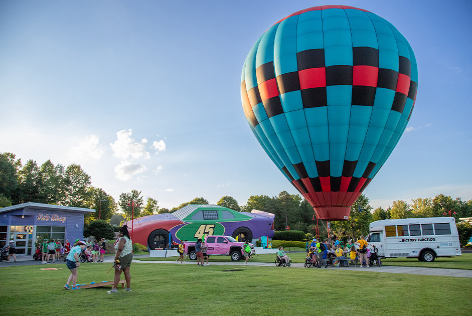After my interview with Richard Petty, my family and I were able to visit Victory Junction in person and experience their NASCARnival night they do each Tuesday night of their summer camps. It’s true that nothing anyone says can paint the picture better than seeing it in person. These nights are filled with so many fun activities for the campers like hot air balloons, dunk tanks, pies in the face, yummy snacks and more! The most exciting part of these nights is when varying pit crews and their drivers show up to do a live pitstop up close for all the kids to see! We happened to be there when Cars Tour driver, Lanie Buice was there with her pit crew. She is the first female driver who they’ve had out for a NASCARnival night, which was so cool! It was such an honor to witness such genuine fun and joy that night. Michael Cottingham, Chief Marketing Officer at VJ showed us around the campgrounds and used the phrase “challenge by choice” often when sharing the opportunities the kids are presented with. We also got to speak with Frances Beasley, Chief Development Officer at VJ. It was clear they were both proud of and happy to be a part of the lasting change VJ creates for these kids and their families.