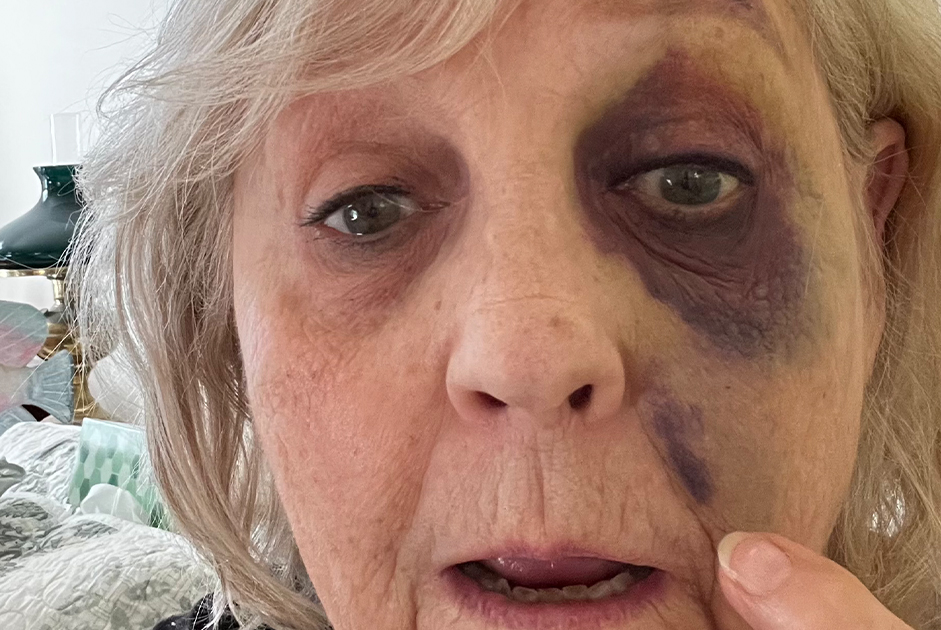 Not very hard, she didn’t feel pain, but it hit her on the eyebrow like a fast-moving train