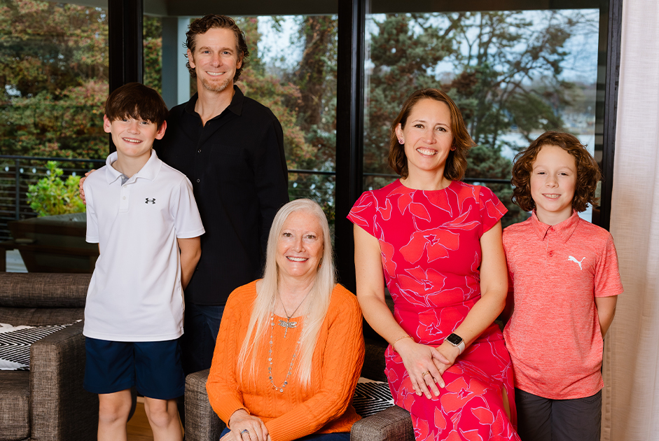 Upstairs, the parents finally have what they longed for – a place to recharge. A peaceful primary suite with quiet corners for reflection. Soothing views of the lake that encourage calm. It’s a home designed to honor who they are as individuals and who they are together.